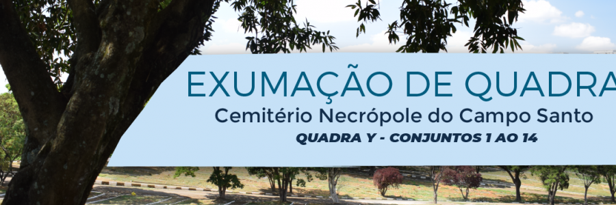 O Sr. Jefferson Chagas, Diretor do Departamento de Serviços Funerários, no uso de suas atribuições legais, TORNA PÚBLICO e solicita o comparecimento dos familiares ou seus representantes legais para providenciarem a exumação dos restos mortais dos falecidos que se encontram inumados na quadra Y conjuntos 01 ao 14 no Cemitério Necrópole do Campo Santo, conforme os dispostos nos artigos da Lei Municipal nº 2845/1984.